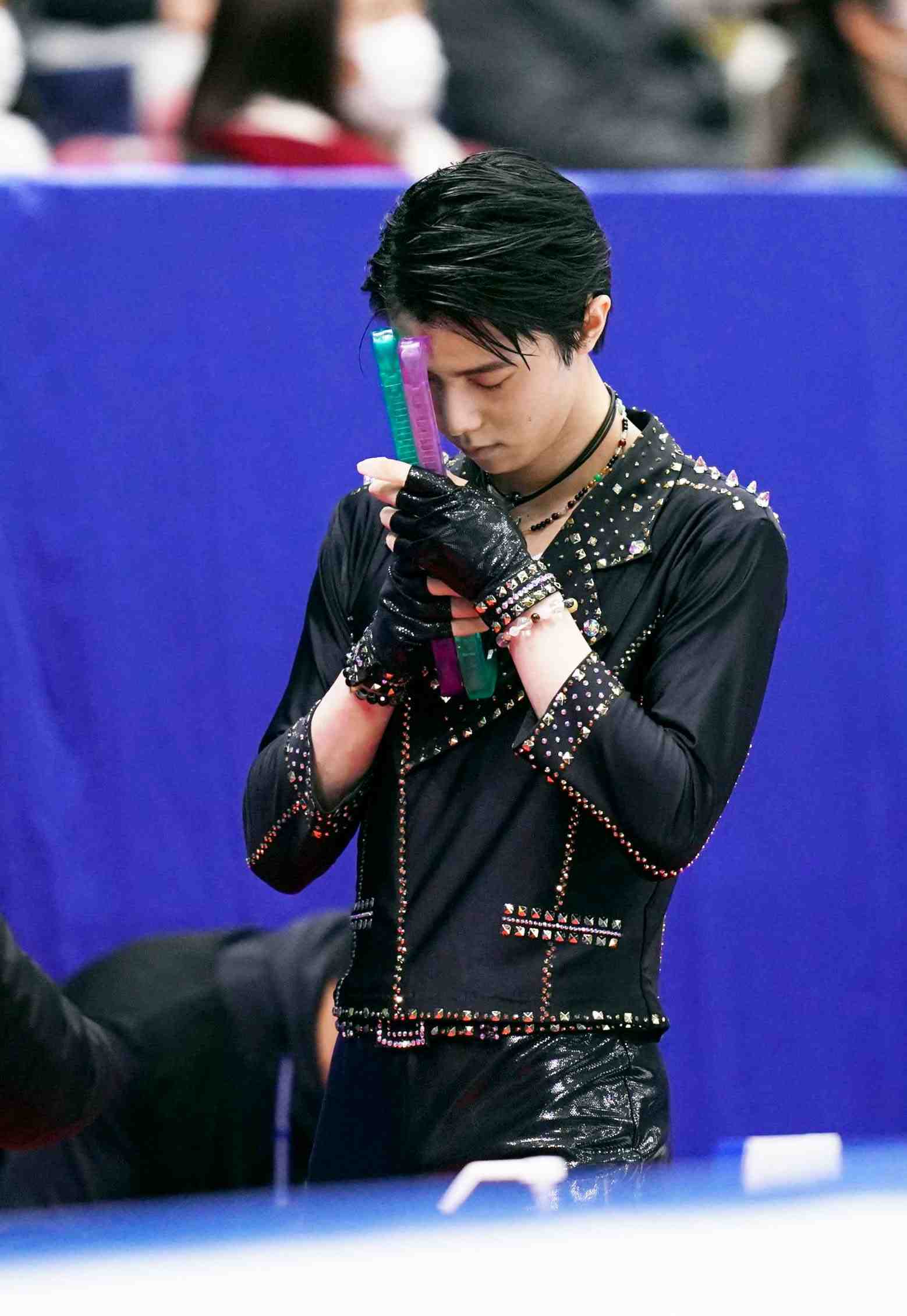 Yuzuru Hanyu of Team Japan waits for their score during the Men ...