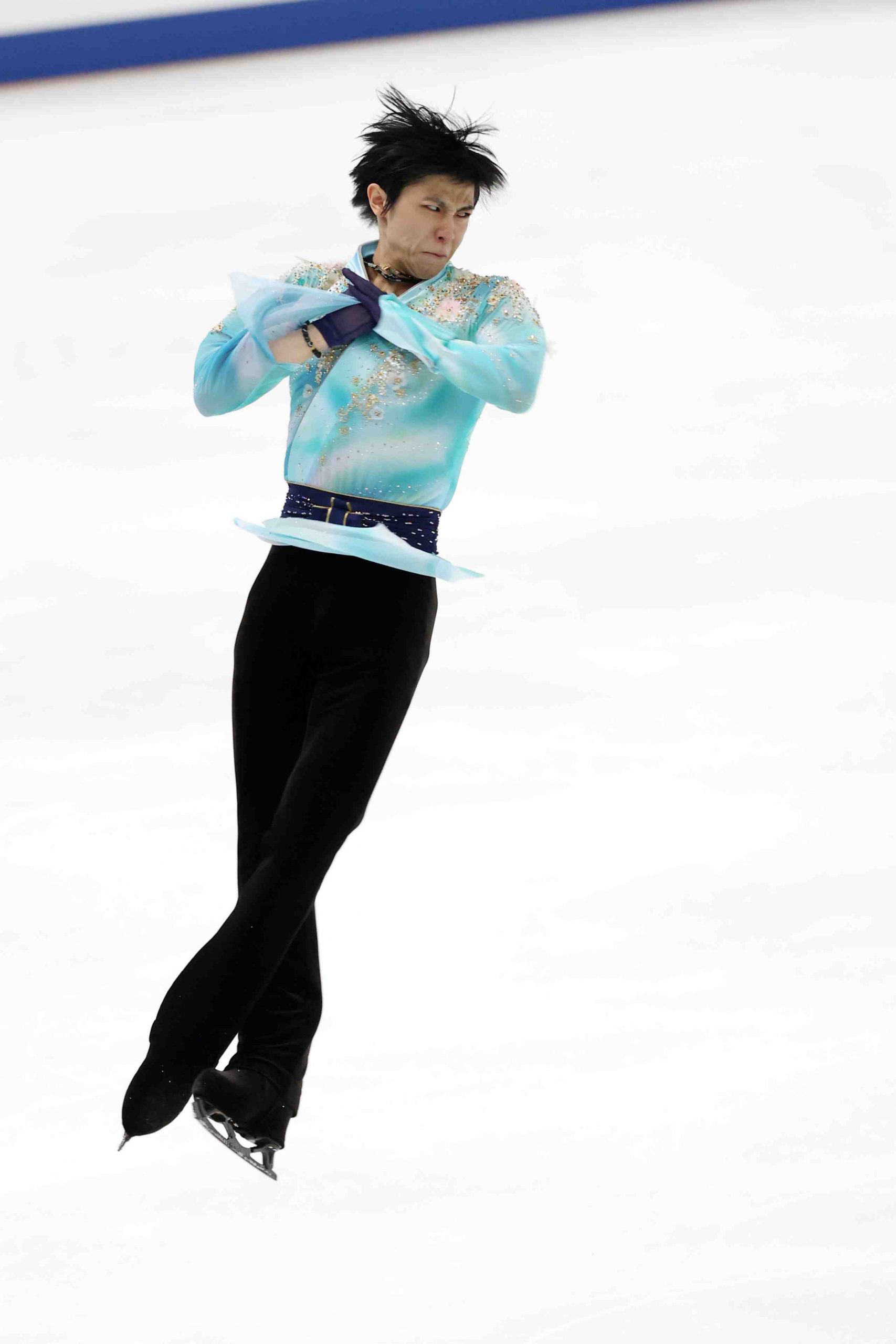 Yuzuru Hanyu of Team Japan in action during the warm up prior to the ...
